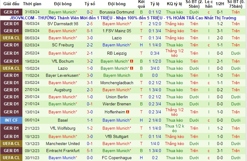 - Chọn Bayern Munich HT