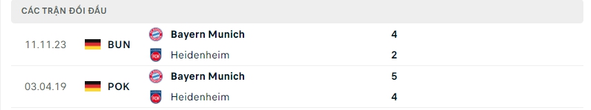 Lịch sử thi đấu của Heidenheim vs Bayern Munich