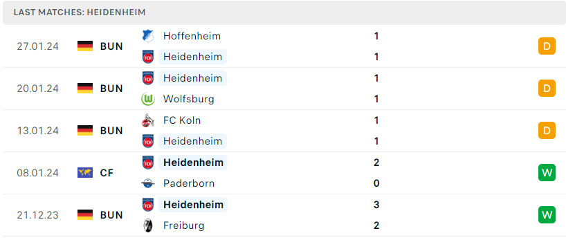 Có vẻ như sau chuỗi trận khó khăn ở đầu mùa thì mọi thứ đang trở nên vào form hơn với tân binh Heidenheim, dù chỉ vừa quay trở lại Bundesliga mùa giải năm nay nhưng đoàn quân Frank Schmitt đã ngay lập tức để lại dấu ấn cũng như tạo dựng được chỗ đứng riêng. Hiện tập thể này đang đứng ở vị trí thứ 10 trên BXH, dẫu sao thì vẫn còn một nửa chặng đường phía trước và họ cần phải tiếp tục cải thiện và chứng minh năng lực qua từng ngày. Màn tiếp đón Dortmund sẽ là một thử thách không dễ.