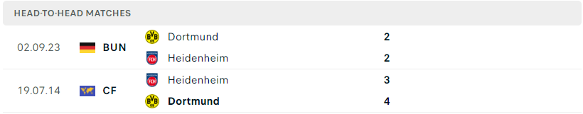 Thành tích đối đầu của Heidenheim vs Dortmund