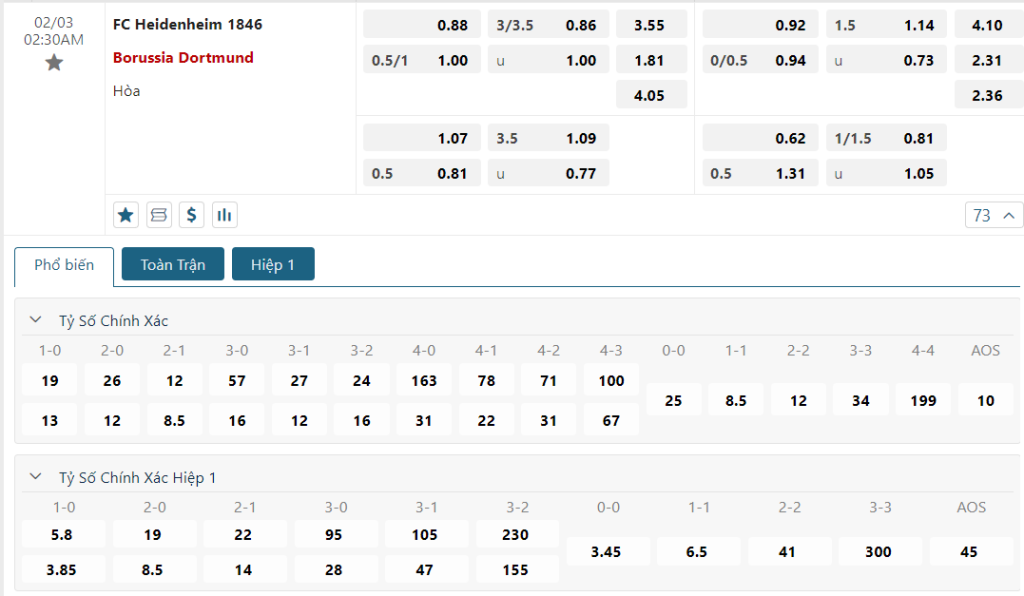 Soi kèo tỉ số Heidenheim vs Dortmund