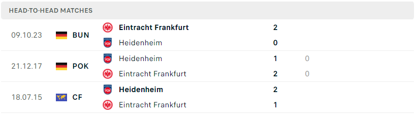 Thành tích đối đầu của Heidenheim vs Eintracht Frankfurt