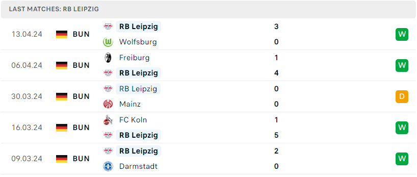 Phía bên kia, sau khoảng thời gian trượt dài cuối cùng RB Leipzig đã có những động thái trở lại. Sau màn hủy diệt Freiburg 4-1, Die Roten Bullen tiếp tục đánh bại Wolfsburg với 3 bàn không gỡ. Thắng lợi vừa qua thực tế đã là trận bất bại thứ 7 liên tiếp của thầy trò Marco Rose. Thế nhưng, cuộc đua top 4 sẽ hứa hẹn không dễ dàng với họ, khi đối thủ trực tiếp của họ chính là Dortmund đang bám đuổi ngay phía sau. Do vậy, đội bóng bang Sachsen bắt buộc phải biết cách tối ưu hóa điểm số trong những trận còn lại.