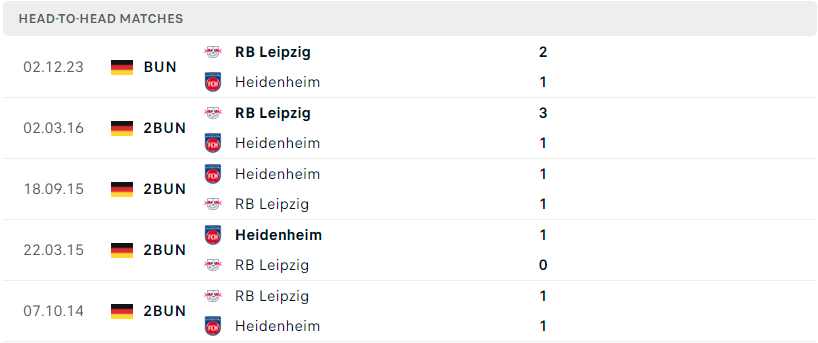 Thành tích đối đầu của Heidenheim vs RB Leipzig