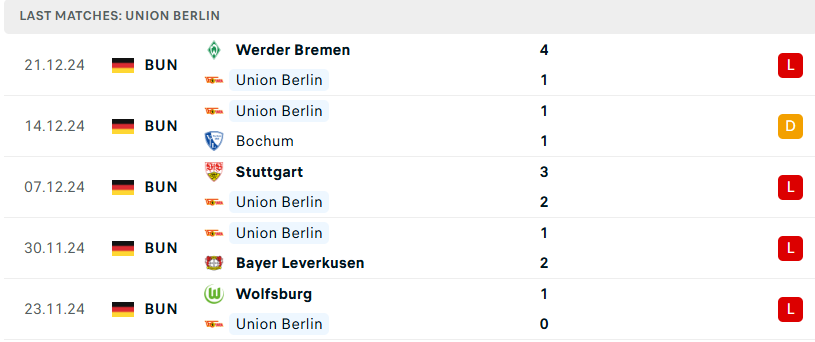 Phong độ của Union Berlin