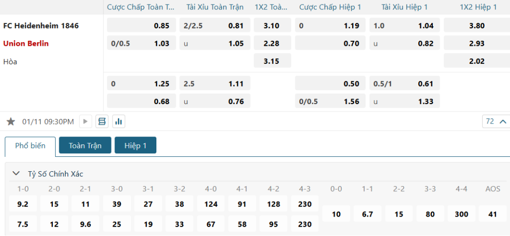 Soi kèo tỉ số Heidenheim vs Union Berlin