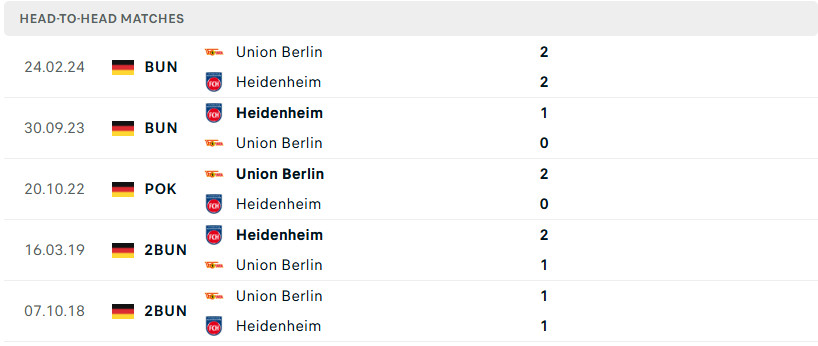 Thành tích đối đầu của Heidenheim vs Union Berlin