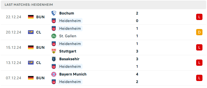 Heidenheim mùa giải năm nay đang trình diễn một bộ mặt cực kỳ thất vọng. Còn nhớ, ở mùa giải trước, họ đã cán đích ở vị trí top 8 và thành công giành vé chơi tại Conference League. Tuy nhiên, giờ đây mọi thứ đang trở nên tồi tệ khi đội bóng đã thua đến 11/15 trận từ đầu mùa và chỉ giành được vỏn vẹn 10 điểm. Một lối chơi thiếu sáng tạo và sự sa sút phong độ đang biến đoàn quân Frank Schmidt trở thành ứng viên sáng cho tấm vé xuống hạng, chạm trán Union Berlin sẽ là cơ hội tốt dành cho họ.