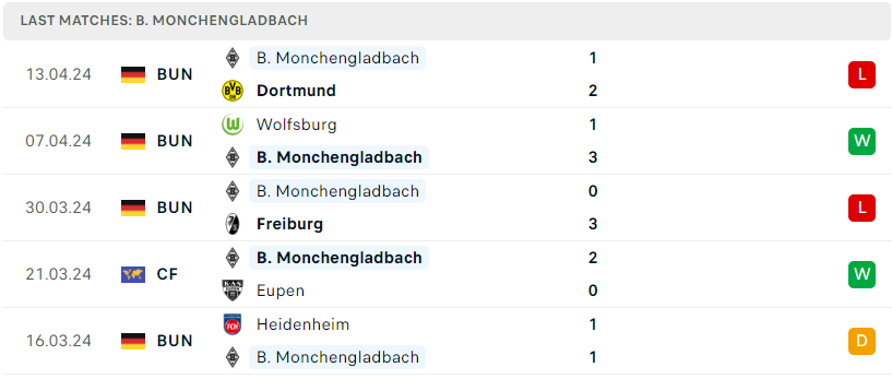 Lịch sử thi đấu đang là sự áp đảo dành cho Monchengladbach khi họ đã thắng đến 4/5 lần đụng độ gần nhất. Dù vậy, nhưng đó là câu chuyện của quá khứ và trong thời điểm mà phong độ của Die Fohlen lại đang sa sút đến mức thảm hại như hiện tại thì thật khó để họ có thể lặp lại kịch bản đó. Sự kỷ luật cùng quyết tâm sẽ giữ lại cho đội chủ nhà 1 trận thắng xứng đáng.