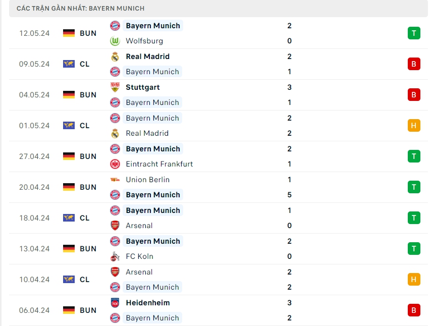 -Phong độ Bayern Munich