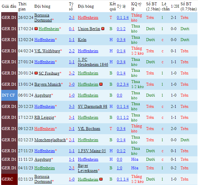- Chọn Hoffenheim -0.5 FT