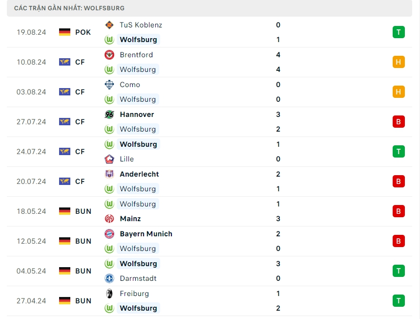 -Phong độ Wolfsburg