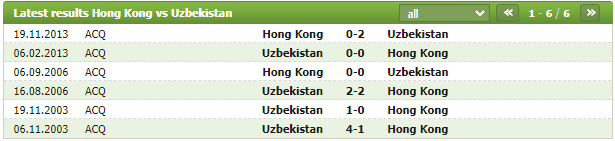 Lịch sử thi đấu của Hong Kong vs Uzbekistan