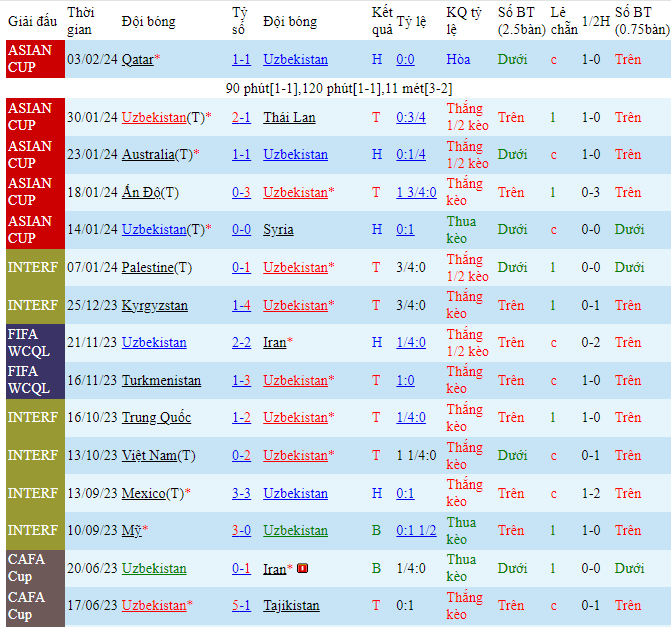 -Phong độ Uzbekistan
