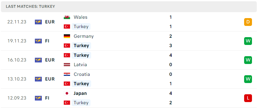 Bên kia chuyến tuyến, Thổ Nhĩ Kỳ cũng không kém cạnh khi họ đã thuận lợi vượt qua vòng loại với thành tích nhất bảng D. Đáng chú, trong bảng đấu này có sự góp mặt của những đối thủ không hề yếu như Croatia và cả Wales. Dường như việc bóng đá của đất nước này đang trên đà lớn mạnh góp phần giúp đội tuyển quốc gia tiến bộ hơn. Lần trở lại của đoàn quân Vincenzo Montella tại đấu trường Euro sắp tới chắc chắn sẽ là rất được hứa hẹn.