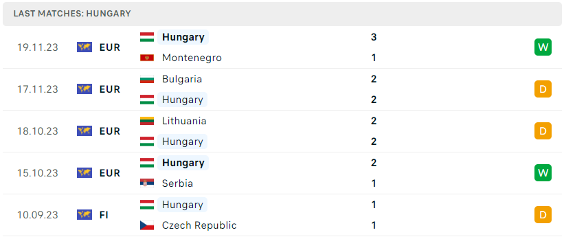 Phong độ đội bóng Hungary vs Thổ Nhĩ Kỳ