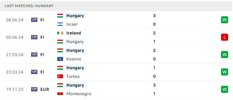 Phong độ đội bóng Hungary vs Thuỵ Sỹ