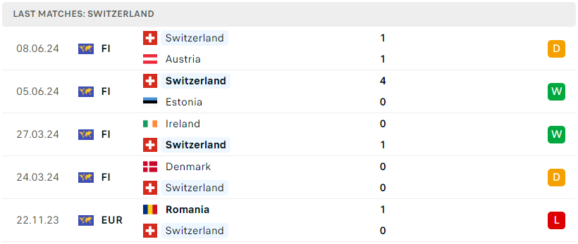Và cái tên cuối cùng sẽ góp mặt tại bảng A là Thụy Sĩ, đây rõ ràng là một đối thủ không hề “dễ xơi” và điều đó được thể hiện ngay qua việc đất nước “đồng hồ” đã loại đội tuyển Pháp ngay tại vòng 1/8 tại kỳ Euro gần nhất. Dù vậy, nhưng kể từ sau World Cup 2022, bóng đá Thụy Sĩ đang đi xuống một cách nghiêm trọng và việc họ chỉ vượt qua vòng loại trong bảng đấu cực dễ với vị thế thứ 2 là một minh chứng. Họ buộc phải sớm tìm lại sự tự tin nếu như không muốn dừng chân tại vòng bảng.
