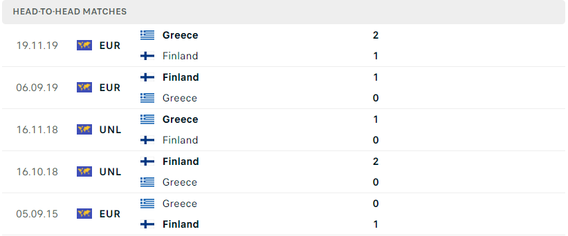 Lịch sử thi đấu thậm chí đang ghi nhận là sự vượt trội cho Phần Lan, khi họ đã thắng đến 3/5 trận đấu gần nhất. Điều này sẽ là điểm tựa tinh thần quan trọng cho Phần Lan, đồng thời đặt ra thách thức không nhỏ cho Hy Lạp nếu muốn giành trọn vẹn 3 điểm trên sân nhà. Trận đấu hứa hẹn sẽ rất căng thẳng và kịch tính khi cả hai đội đều có lý do để tự tin và quyết tâm cao độ.