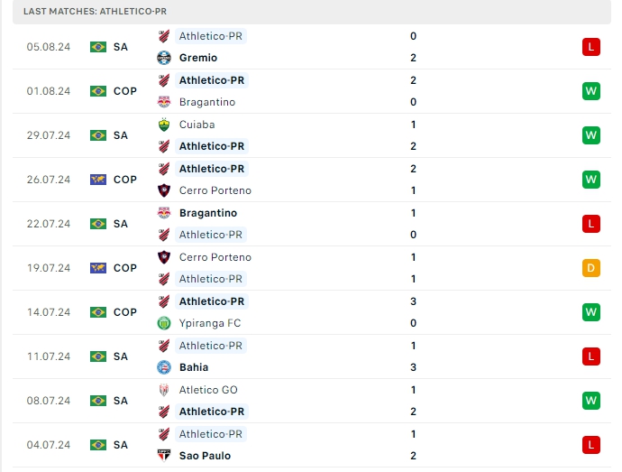 -Phong độ Athletico-PR