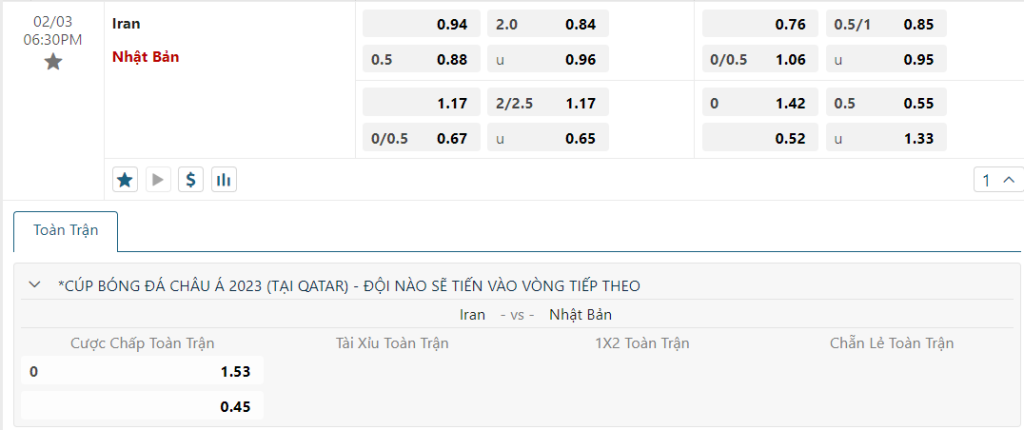 Soi kèo Châu Á, kèo chấp Iran vs Nhật Bản