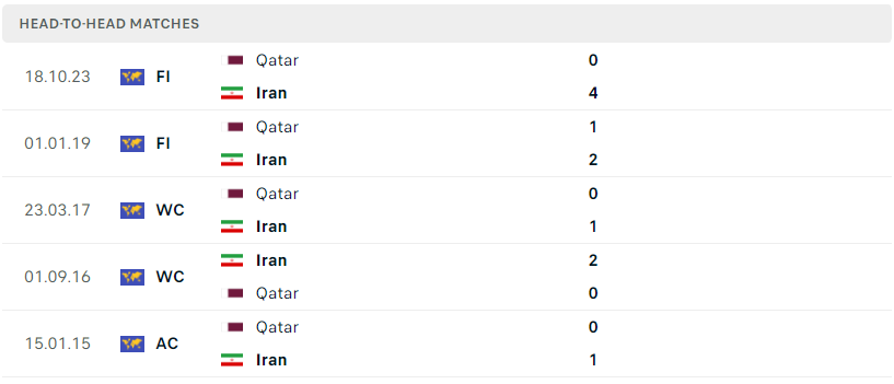 Thành tích đối đầu của Iran vs Qatar