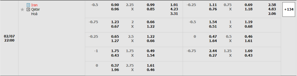 Kèo Châu Âu vẫn đang là sự nhỉnh hơn dành cho Iran, khi mức ăn của họ đang là 1.91 trong khi con số này của nước chủ nhà là 4.23. Với mục tiêu xô đổ kỷ lục 4 lần lên ngôi của Nhật Bản thì tin chắc rằng đoàn quân Amir Ghalenoei sẽ bước vào trận bán kết sắp tới với tinh thần và sự quyết tâm cao nhất. Sự vượt trội cả về thực lực lẫn yếu tố tâm lý sẽ giúp họ vượt qua Qatar.