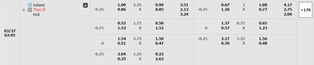 Soi kèo Châu Á, kèo chấp Ireland vs Thụy Sĩ