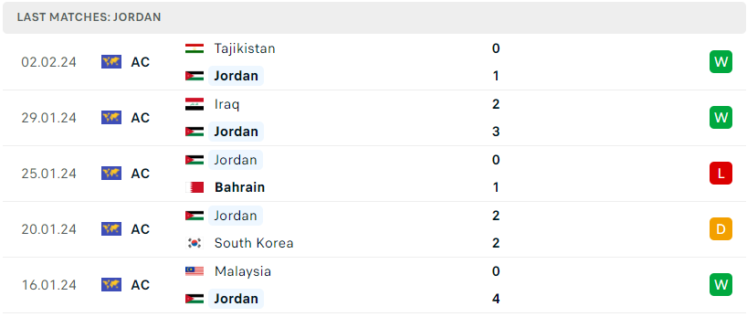 Phong độ đội bóng Jordan vs Hàn Quốc