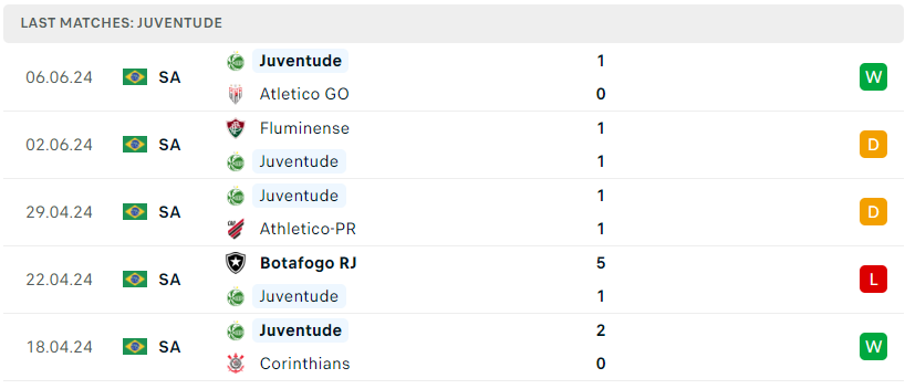 Phong độ của Juventude RS