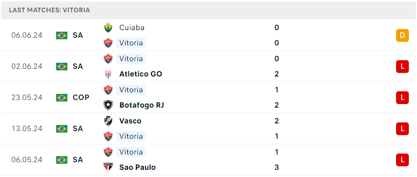 Phong độ của Vitoria BA
