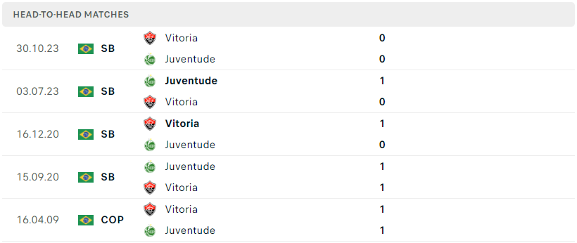 Thành tích đối đầu của Juventude RS vs Vitoria BA