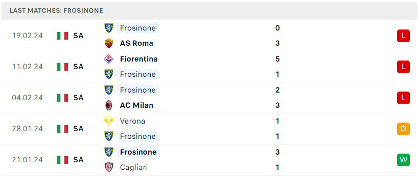 Phong độ của Frosinone