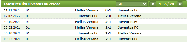 Trong khi đó với Verona, đội bóng áo vàng xanh lại là một sự khác biệt quá lớn so với đối thủ của mình. Sự chật vật vẫn chưa thôi buông tha các vị khách khi sau thất bại 1-3 trước Sampdoria thì đó cũng là vòng đấu thứ 5 liên tiếp không thê thắng của họ. Chính sự ỳ ạch quá lớn đã mang lại cho Verona sự bị động trong cuộc chiến trụ hạng lúc này. 19 điểm sau 27 lượt trận là một con số không đủ để giúp cho Verona an toàn khi họ vẫn đang kém vị trí thứ 17 đến 5 điểm. Có lẽ màn hành quân đến sân của Juventus sắp tới vẫn sẽ là một cơn ác mộng nữa đối với họ. Trận đấu sẽ là sự áp đảo của đội chủ nhà và khả năng cũng sẽ có không ít những bàn thắng được ghi.
