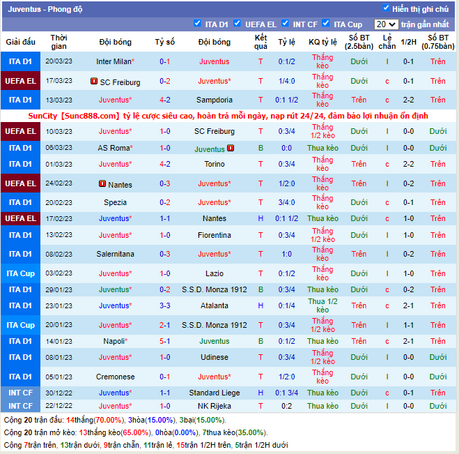 Juventus sau chiến thắng tối thiểu ngay trên sân của đại kình địch Inter Milan đã có cho mình trận thắng thứ 17 ở Serie A mùa giải này, đây là con số chỉ thua kém đội bóng đang giữ vị trí đầu bảng là Napoli với 23 lần có được niềm vui và chỉ chừng đó thôi cũng là đủ để thấy được sự quyết tâm của Lão Bà ở thời điểm hiện tại đang lớn ra sao. Bất chấp án phạt trừ 15 điểm đầy nặng nề trước đó thì với 41 điểm có được, Juventus hiện tại chỉ còn kém một vị trí trong khu vực top 4 đúng 7 điểm khi mà giải đấu sẽ còn đến hơn 10 vòng đấu nữa mới chính thức hạ màn. Binh đoàn áo sọc đen trắng chắc chắn sẽ không muốn sự thăng hoa của mình phải chấm dứt và họ sẽ tiếp tục thể hiện sự tập trung.