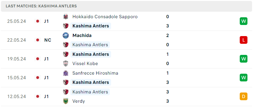 Phong độ đội bóng Kashima Antlers vs Yokohama F. Marinos