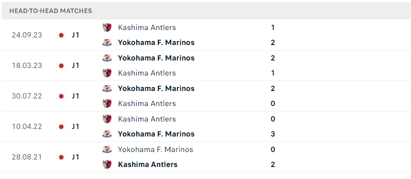 Thành tích đối đầu của Kashima Antlers vs Yokohama F. Marinos