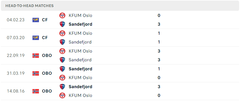 Mặc dù trong cuộc đụng độ tại giao hữu năm ngoái thì Sandefjord đã dễ dàng vượt qua KFUM Oslo với tỉ số 3-0, dù vậy nhưng đó là câu chuyện của 1 năm về trước và KFUM Oslo ở hiện tại đã lớn mạnh hơn rất nhiều. Sức mạnh sân nhà cùng quyết tâm vươn lên và hơn hết là sự kém cỏi của Sandefjord sẽ mở ra một chiến thắng thuyết phục dành cho KFUM Oslo.
