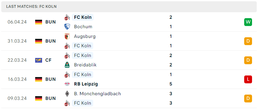 Phong độ của FC Koln