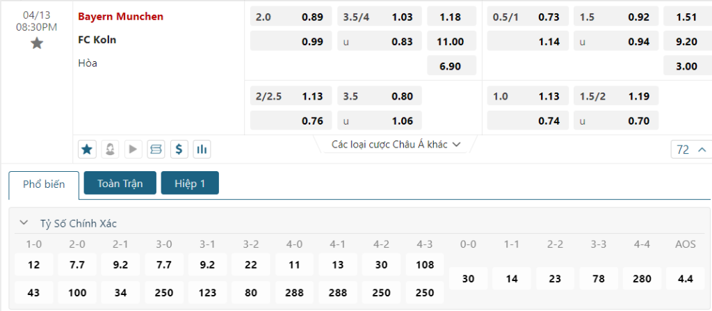 Soi kèo Châu Á, kèo chấp Bayern Munich vs FC Koln