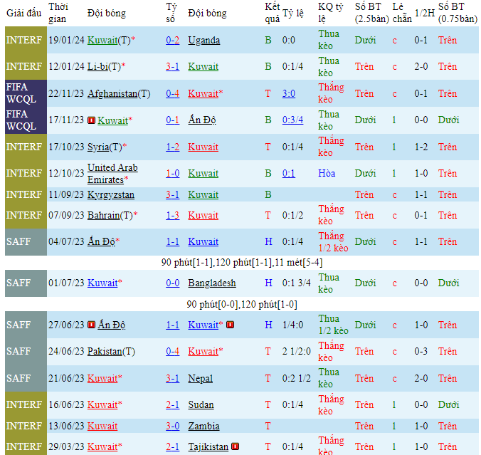 Phong độ đội bóng Kuwait vs Qatar
