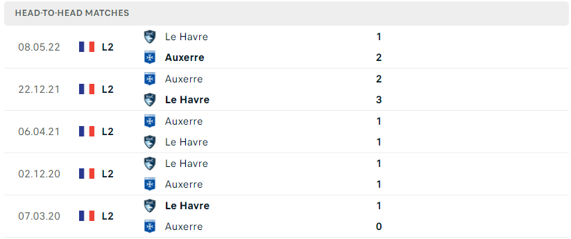 Lịch sử thi đấu vẫn đang ghi nhận là sự vượt trội dành cho Le Havre khi tập thể này đã bất bại đến 4/5 cuộc chạm trán gần nhất. Dù đây thống kê này chỉ mang tính chất tham khảo nhưng cũng sẽ phần nào cải thiên sự tự tin của Le Havre. Trận thua 0-2 trước Nantes đã phơi bày nhiều điểm yếu của Auxerre và đó sẽ là thứ tiếp tục khiến họ chịu viễn cảnh mất điểm trong chuyến đi xa nhà.