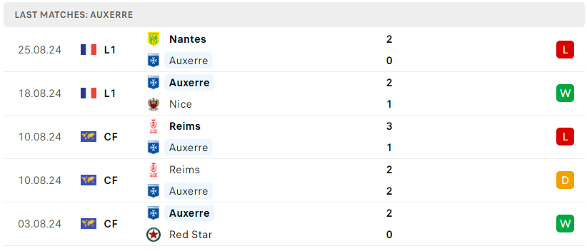 Bên phía kia, Auxerre cũng vừa phải đón nhận thất bại đầu tiên của mùa giải khi để Nantes đánh bại với tỉ số 2-0. Dù vậy, trong số 3 tân binh góp mặt tại Ligue 1 mùa giải năm nay, Auxerre có lẽ là tập thể được đánh giá cao nhất. Với bề dày truyền thống và lực lượng được củng cố mạnh mẽ trong kỳ chuyển nhượng hè vừa qua, Auxerre vẫn được xem là một đối thủ hết sức đáng gờm. Chuyến làm khách trước Le Havre sẽ là cơ hội để Auxerre khẳng định giá trị của mình và tìm lại cảm giác chiến thắng.
