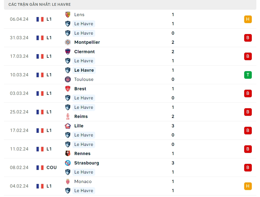 -Phong độ Le Havre