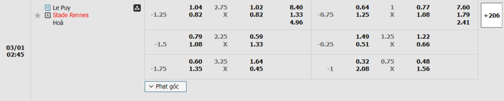 Kèo Châu Âu đang là sự áp đảo hoàn toàn dành cho các vị khách, khi mức ăn của họ đang là 1.33 trong khi con số này của Le Puy là 8.40. Nhìn chung, trong một thời điểm mà Rennes đang thi đấu với phong độ rất cao như hiện tại thì rõ ràng một đối thủ bị đánh giá thấp hơn họ rất nhiều về mặt chuyên môn sẽ thật khó để làm nên được bất kỳ điều đặc biệt gì trước thầy trò Julien Stephan.