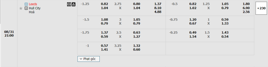Với lợi thế mang tên sân nhà cùng với thực lực vượt trội thì Leeds Utd hiện vẫn đang là cái tên nhận được sự ưu ái trong kèo đấu này, qua mức giá trên sàn giao dịch là 1.25. Một con số cho thấy được giá trị và sức mạnh vượt trội của binh đoàn trắng so với đối thủ. Dẫu phong độ của đoàn quân Daniel Farke là chưa thật sự vào form, thế nhưng để so với một Hull City đang tìm lại sự khó chịu thì quả thật Leeds vẫn nhỉnh hơn đáng kể. Chưa kể, họ còn được chơi trên sân nhà Elland Road và tại đây đại diện Tây Yorkshire đã thắng đến 3 và hòa 1 trong 5 lần gần nhất tiếp đón Hull City. Việc chưa mang về bất kỳ chiến thắng nào sau 3 trận ra sân có lẽ là minh chứng rõ ràng nhất cho thấy sự yếu kém của Hull City. Do đó, hoàn toàn có thể đặt niềm tin vào Leeds Utd.
