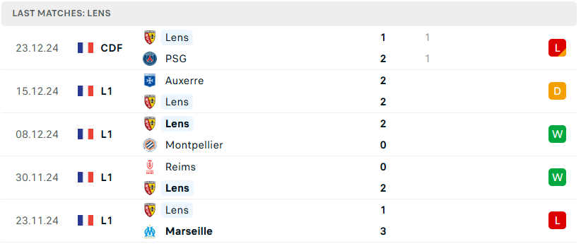 Sau chuỗi 3 trận bất bại liên tiếp, Lens đã phải dừng bước tại Cúp Quốc gia khi để thua PSG trên chấm luân lưu. Dưới sự dẫn dắt của William Still, Lens tiếp tục thể hiện lối chơi vô cùng khó chịu, điều này được minh chứng bằng việc họ chỉ để thua 3 trận sau 15 vòng đấu kể từ đầu mùa. Tuy nhiên, vấn đề lớn nhất của đội bóng vàng-đỏ là khả năng kết liễu đối thủ, khi họ đã để hòa tới 6 trận. Đây là điều cần khắc phục nếu Lens muốn cải thiện vị trí và nuôi hy vọng cao hơn trong phần còn lại của mùa giải.
