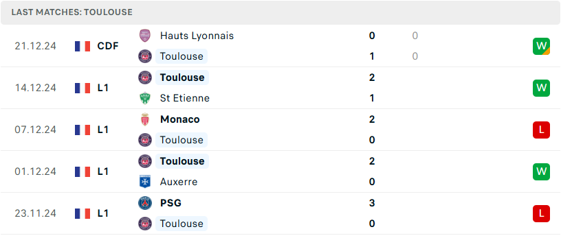 Phong độ đội bóng Lens vs Toulouse