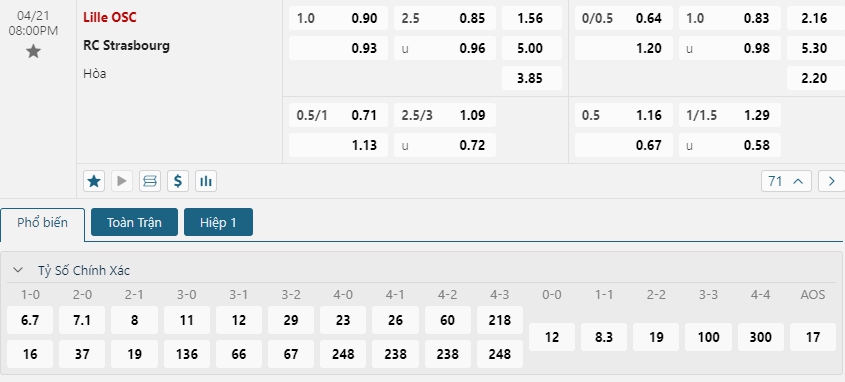 Kèo Châu Âu vẫn tiếp tục là sự vượt trội dành cho Lille với mức ăn đang là 1.56 trong khi con số này của các vị khách là 5.00. Nhìn chung, với một trạng thái phong độ đầy thăng hoa và mục tiêu đua tranh vị trí top đầu chắc chắn Lille không muốn đánh mất bất kỳ điểm số nào. Chưa kể, họ còn được chơi trên sân nhà và cũng tràn đầy quyết tâm rửa hận sau thất bại ở lượt đi.