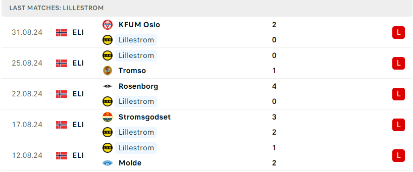 Sự thất vọng đã dâng lên đến đỉnh điểm khi Lillestrom tiếp tục trải qua trận thua bạc nhược nữa trước tân binh KFUM Olso ở vòng đấu trước. Thống kê cho thấy, đây chính là trận thua thứ 6 liên tiếp của tập thể này và ở 9 vòng đấu gần nhất thì đoàn quân David Nielsen cũng chỉ mang về đúng 3 điểm. Chuỗi phong độ sa sút khiến Lillestrom trượt dài trên BXH và đang có nguy cơ rất lớn phải chia tay Eliteserien. Trận đấu với Rosenborg chắc chắn sẽ là thử thách không dễ cho họ.